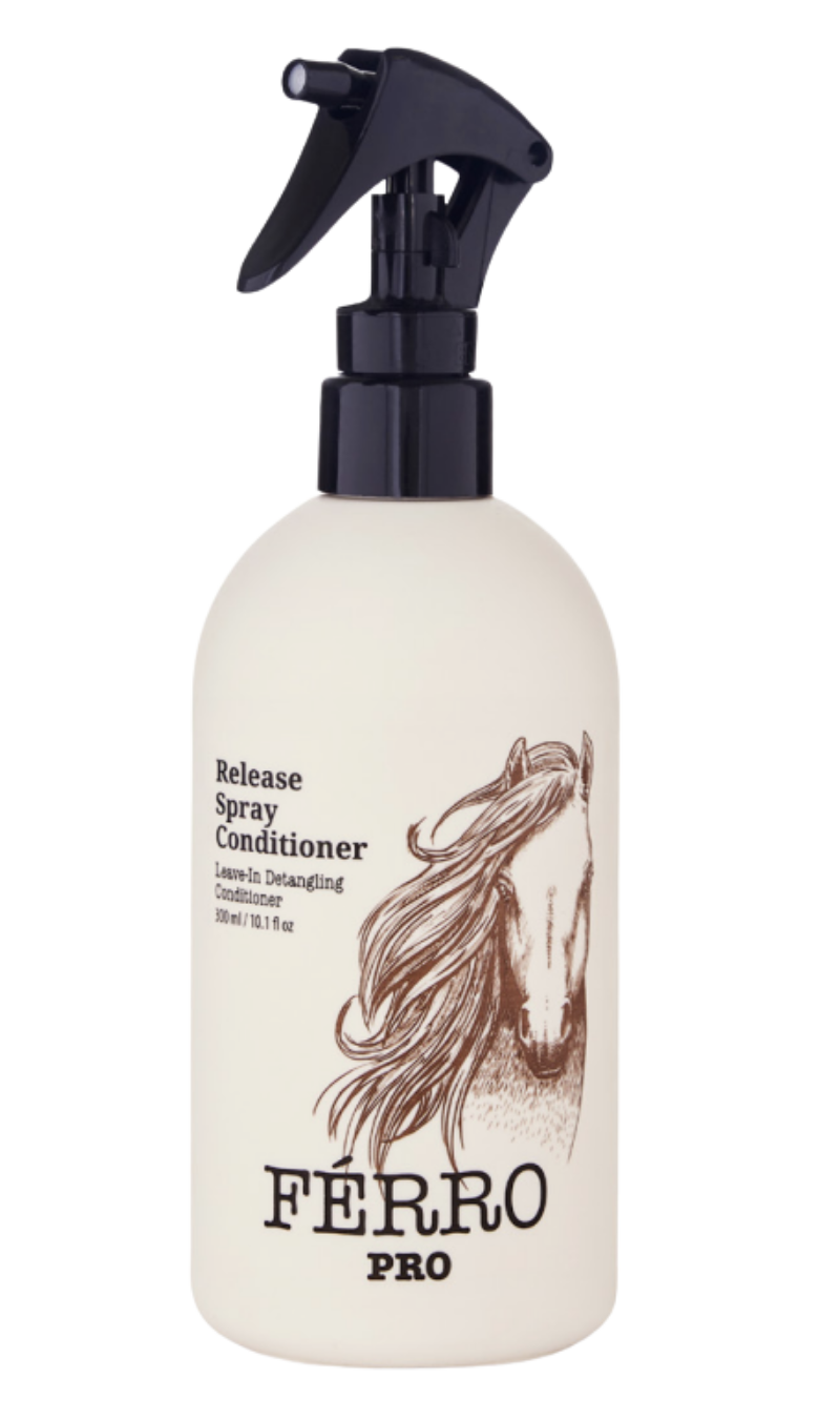 Effortlessly detangle and soften your horse’s mane and tail with FERRO PRO RELEASE SPRAY. This lightweight, leave-in formula helps release knots and tangles, smooths the hair, and restores natural softness and shine — no rinsing required. Enriched with botanical extracts and nourishing oils, it provides long-lasting manageability and a silky, flowing finish.